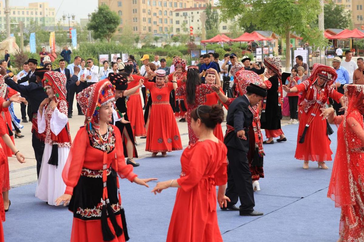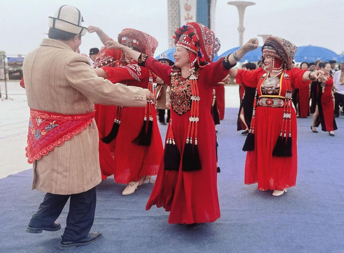 ?。▓D為在克州阿克陶縣各民族歡樂共舞 馬倩妮攝)