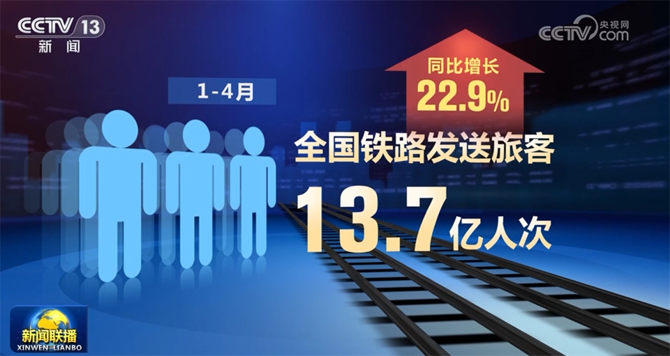 1—4月,全國(guó)鐵路發(fā)送旅客13.7億人次,同比增長(zhǎng)22.9%,客流持續(xù)穩(wěn)定增長(zhǎng),有效激發(fā)了市場(chǎng)消費(fèi)活力。