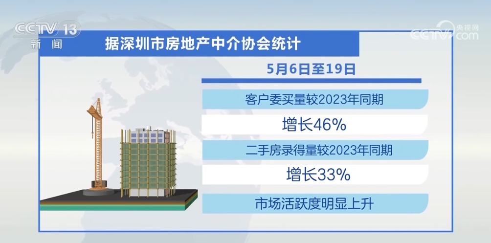 據深房中協(xié)統(tǒng)計,5月6日至19日,深圳市客戶委買量較2023年同期增長46%,二手房錄得量較2023年同期增長33%,市場活躍度明顯上升。