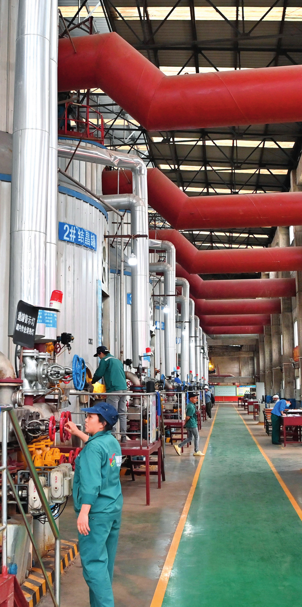工作人員在廣西來(lái)賓小平陽(yáng)湘桂制糖有限公司煮糖車間查看(2023年12月12日攝)周華攝