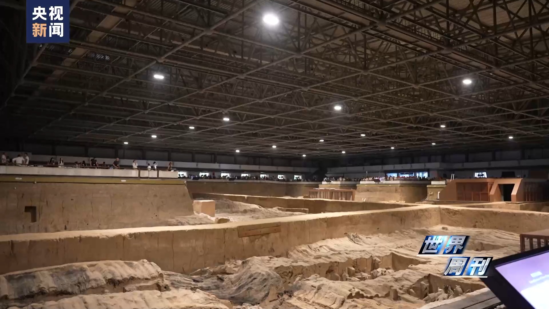 秦始皇帝陵博物院副院長 周萍:其實秦始皇帝陵博物院出土,不僅僅只有彩繪陶俑?,F(xiàn)在觀眾去現(xiàn)場去看的時候,最??吹降木褪菐追N材質(zhì),一種就是我們的彩繪陶俑,一種是坑內(nèi)的土遺址,一種我們銅車馬是金屬文物;其實在土遺址里面,有很多很多這種木質(zhì)的遺存。它這個就是我們這個隔梁在建的時候,實際上就相當(dāng)于用木頭去搭了一個相當(dāng)于小房子,把這些彩繪俑保存在里面。