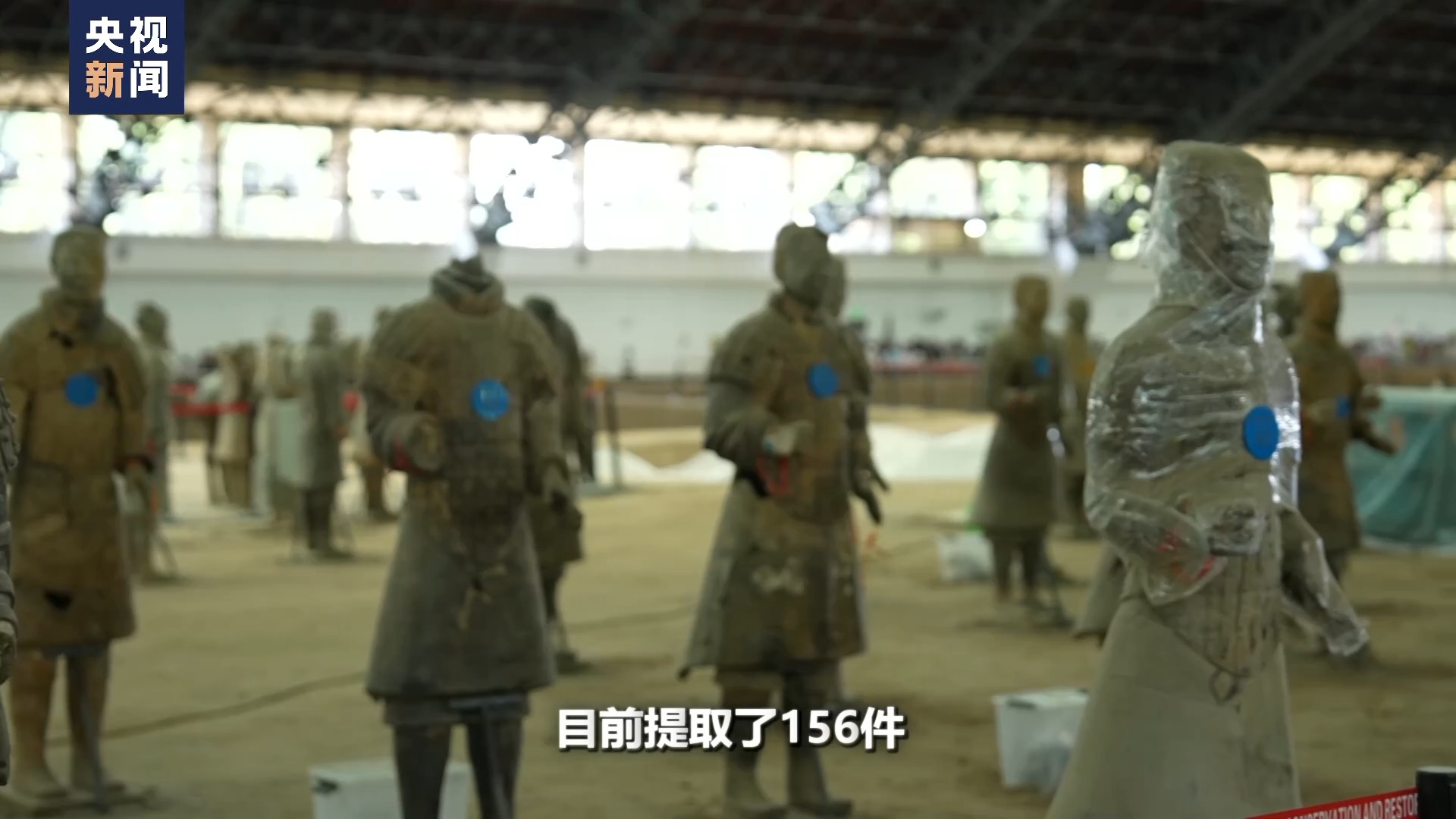 秦始皇帝陵博物院文物保護修復(fù)專家 蘭德省:第三次考古發(fā)掘,主要在秦俑一號坑T23號探方。在這個方位共挖掘了256件兵馬俑,我們剛才已經(jīng)看到目前提取了156件。其中我們修復(fù)了140多件,還有一些我們正在修復(fù)。