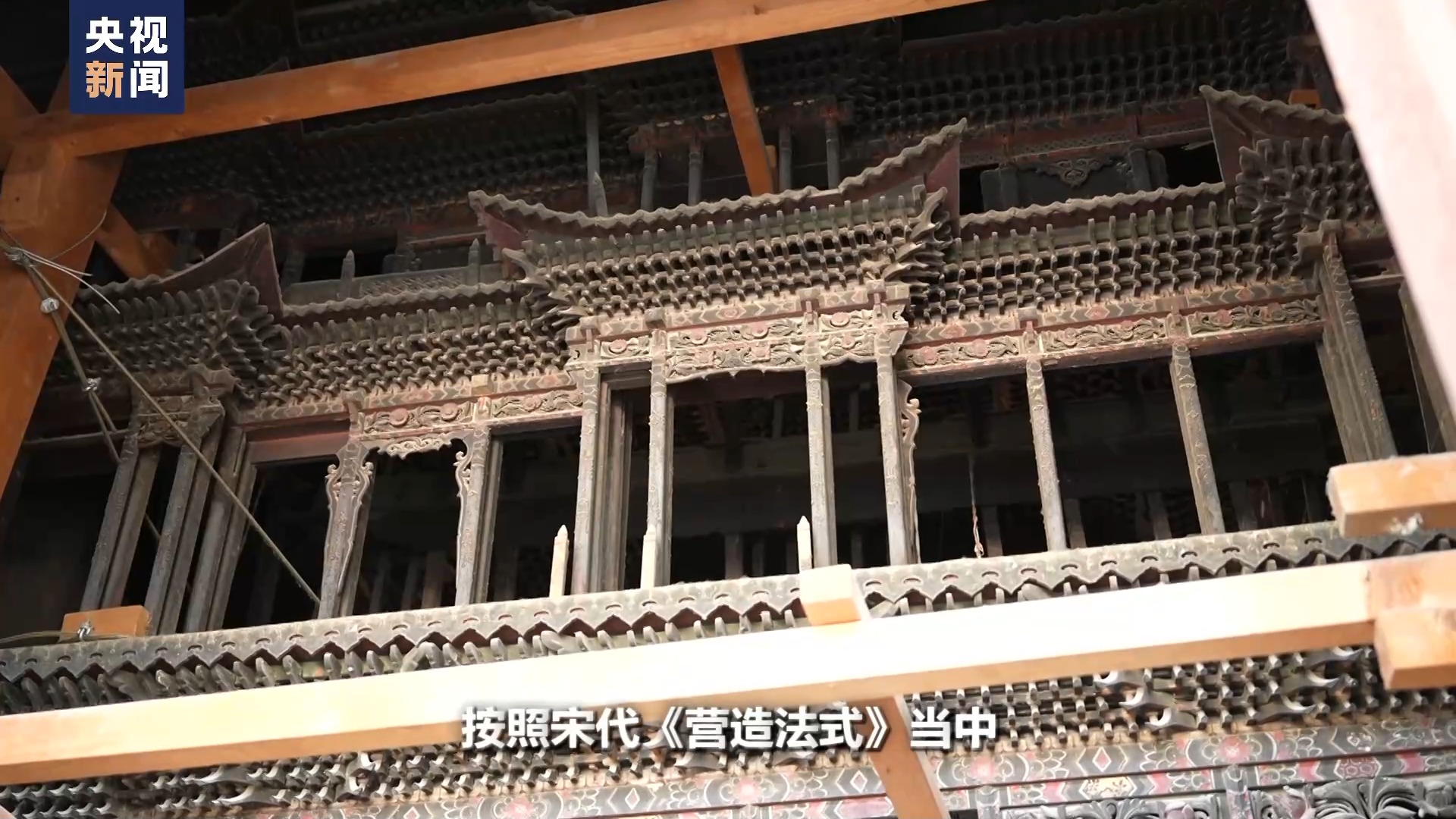 陜西省文物保護研究院保護修復(fù)一部副主任 張芳:他們當(dāng)時的反應(yīng)是非常驚訝,因為這種純粹的,沒有用一根釘子的榫卯結(jié)構(gòu)層層疊疊,在上面天宮樓閣的一個呈現(xiàn)。他們在法國是完全見不到,他們也想象不到。