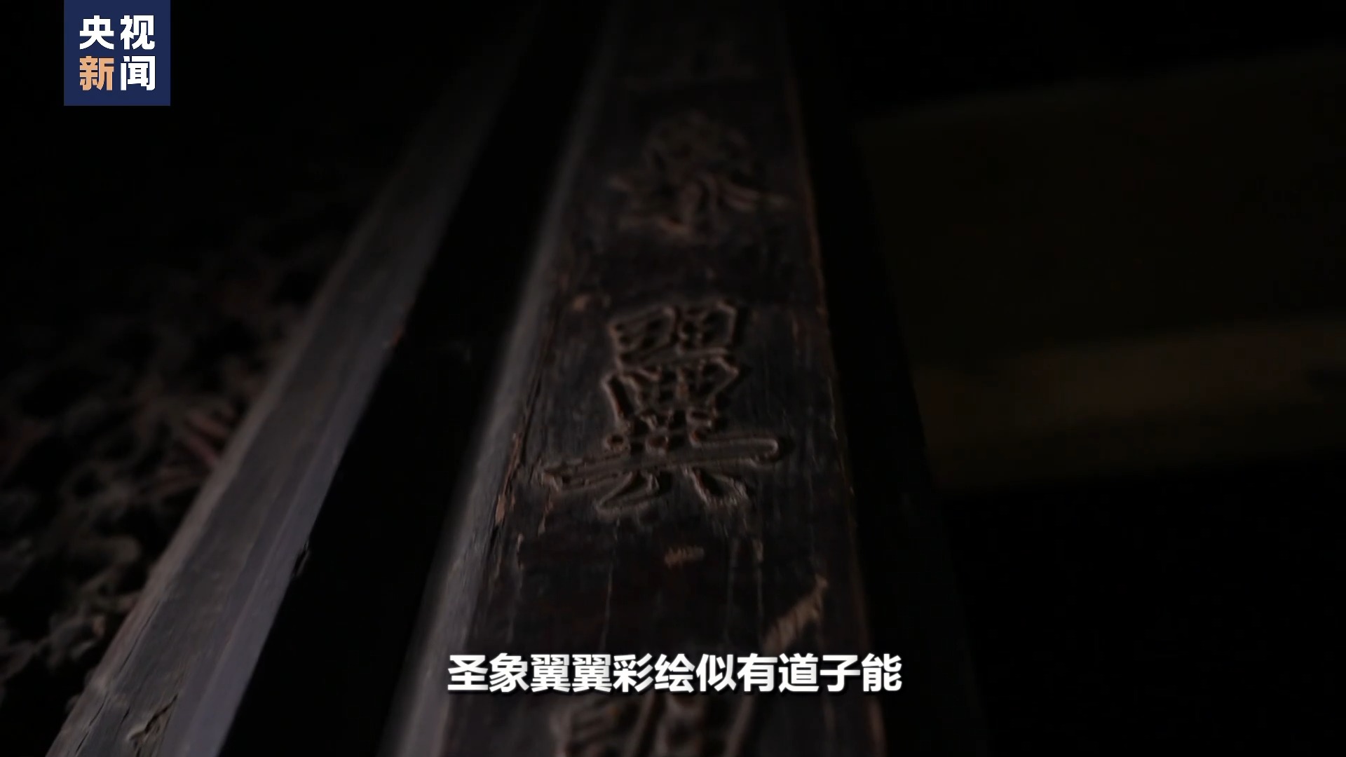 那么剛才提到楹聯(lián)里頭的下楹聯(lián)叫圣象翼翼彩繪似有道子能,它主要說這里的油漆彩畫也是非常精美,就像畫圣吳道子親自繪畫的技能一樣的精美。
