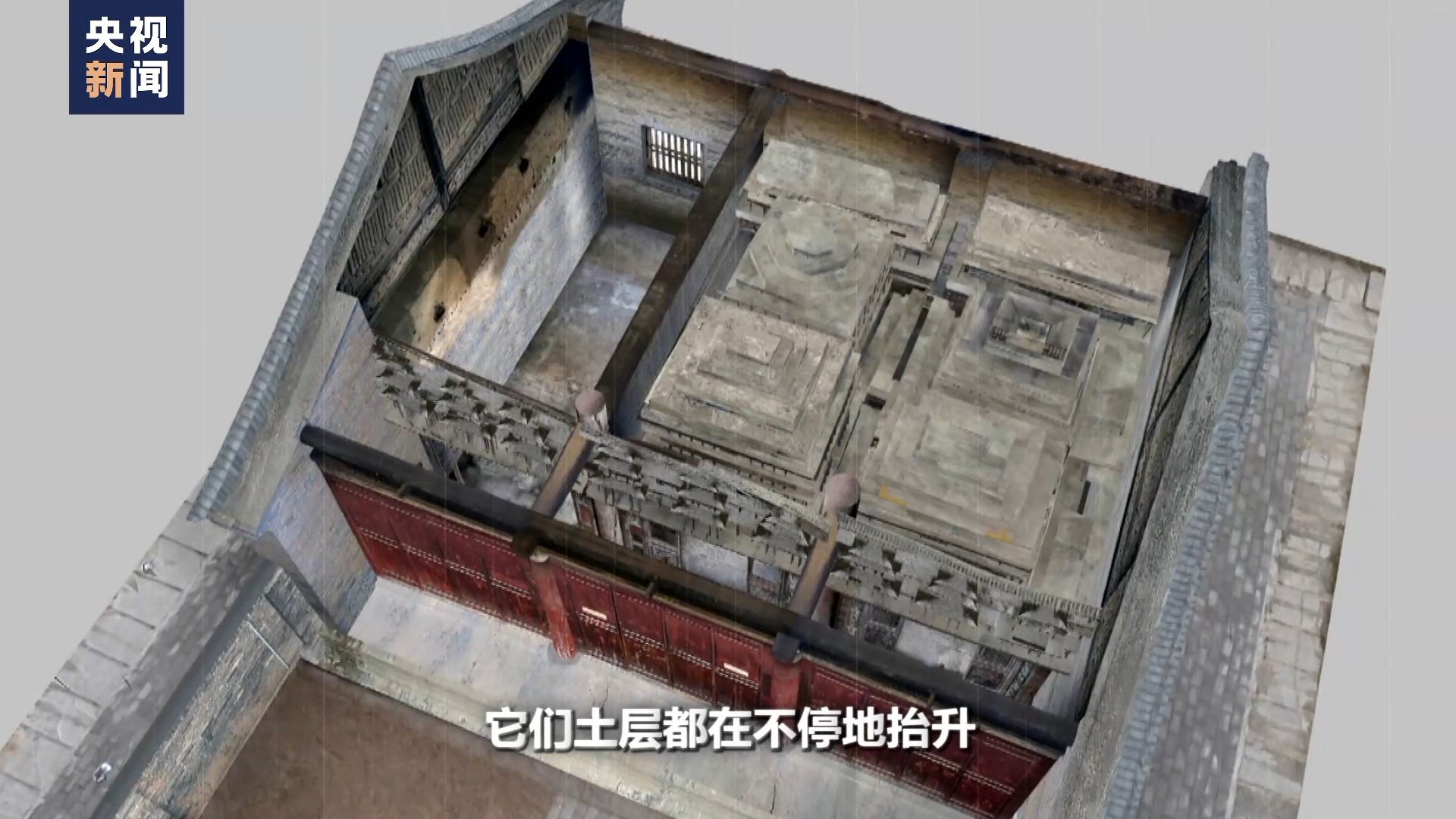 秦始皇帝陵博物院副院長 周萍:基本上到了塔的塔尖位置,它不是上面還有個木塔嗎。木塔現(xiàn)在整體的木質(zhì)維修已經(jīng)基本完成了,它在木臺結(jié)構(gòu)上面貼覆了一層鉛皮,鉛的一些裝置構(gòu)件,隨著鉛往下貼的過程中,已經(jīng)開始落架。所以我們能登到最高位置。