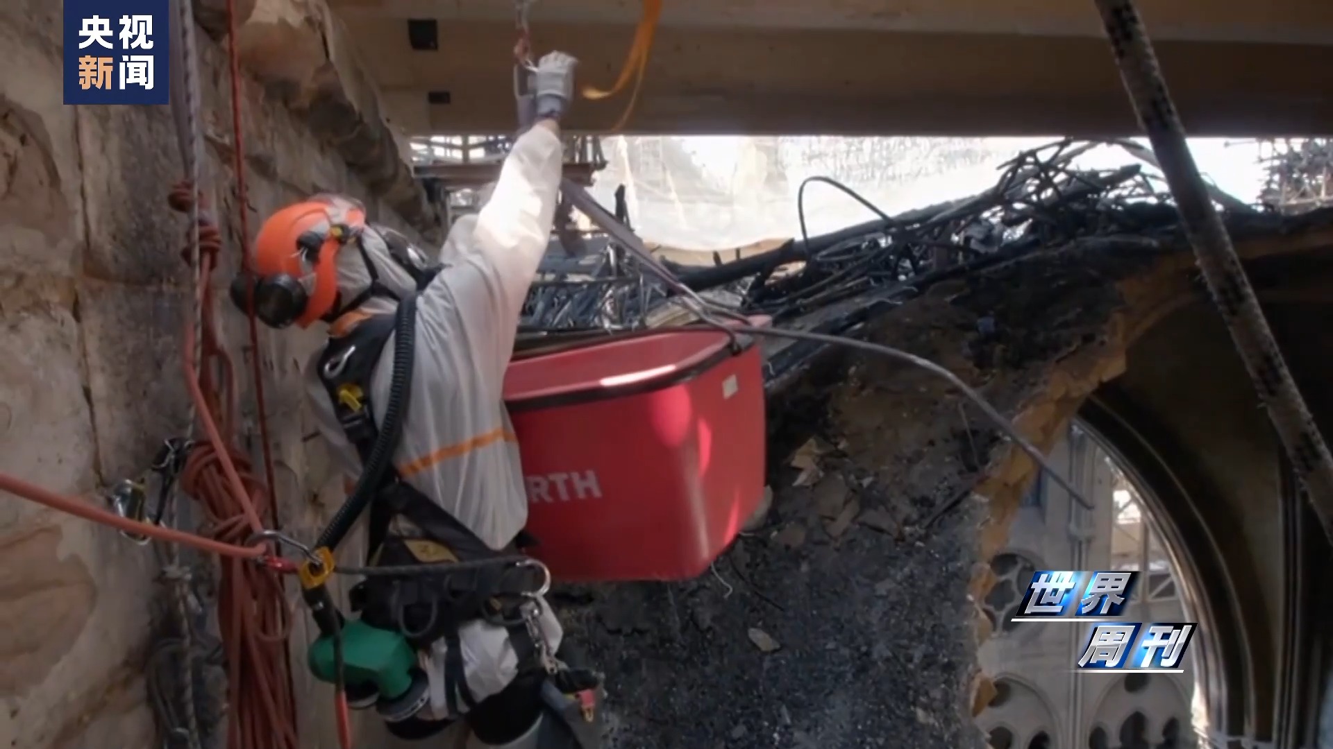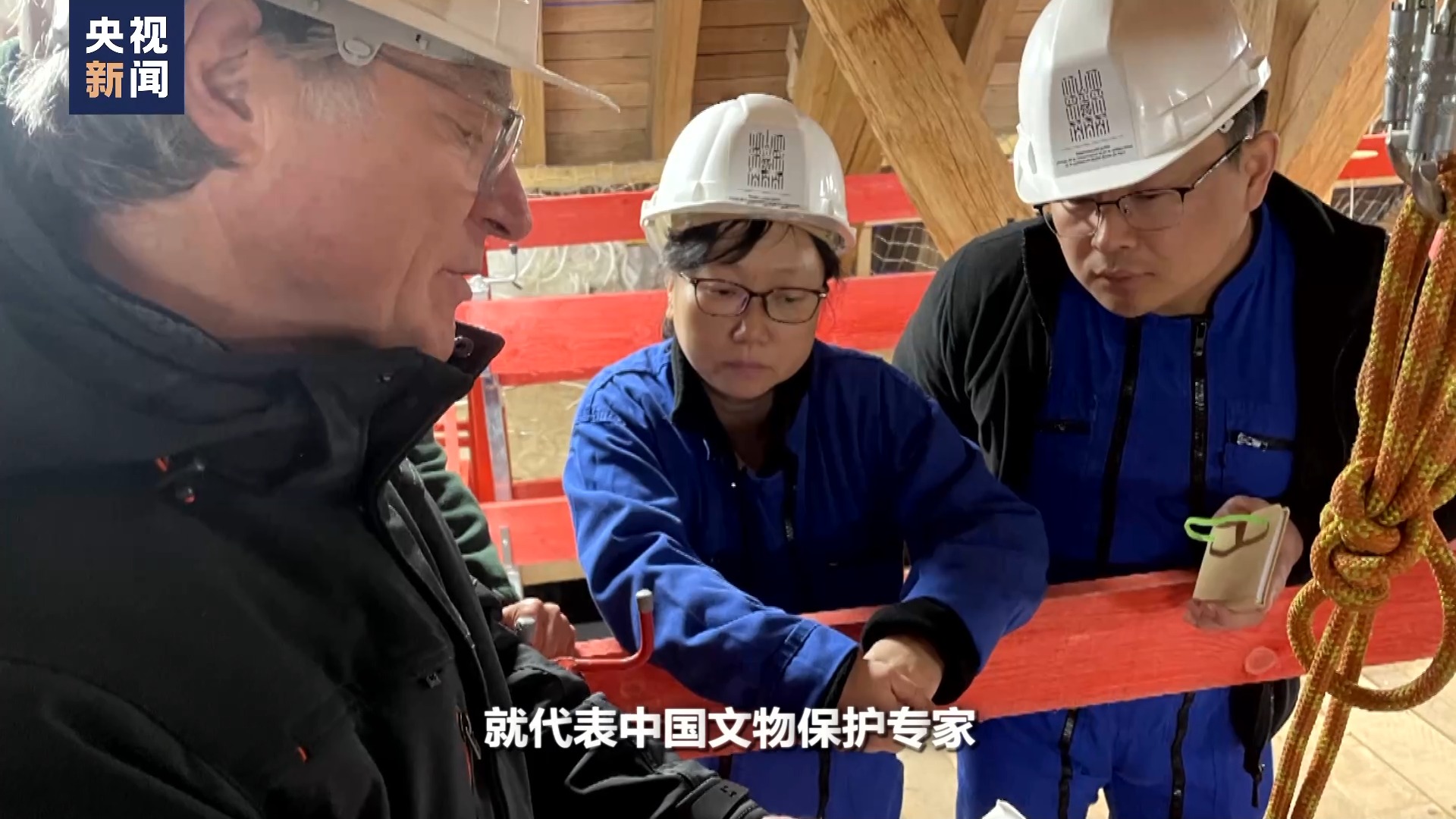 總臺記者 張誠:兩位專家是登上了巴黎圣母院什么位置?