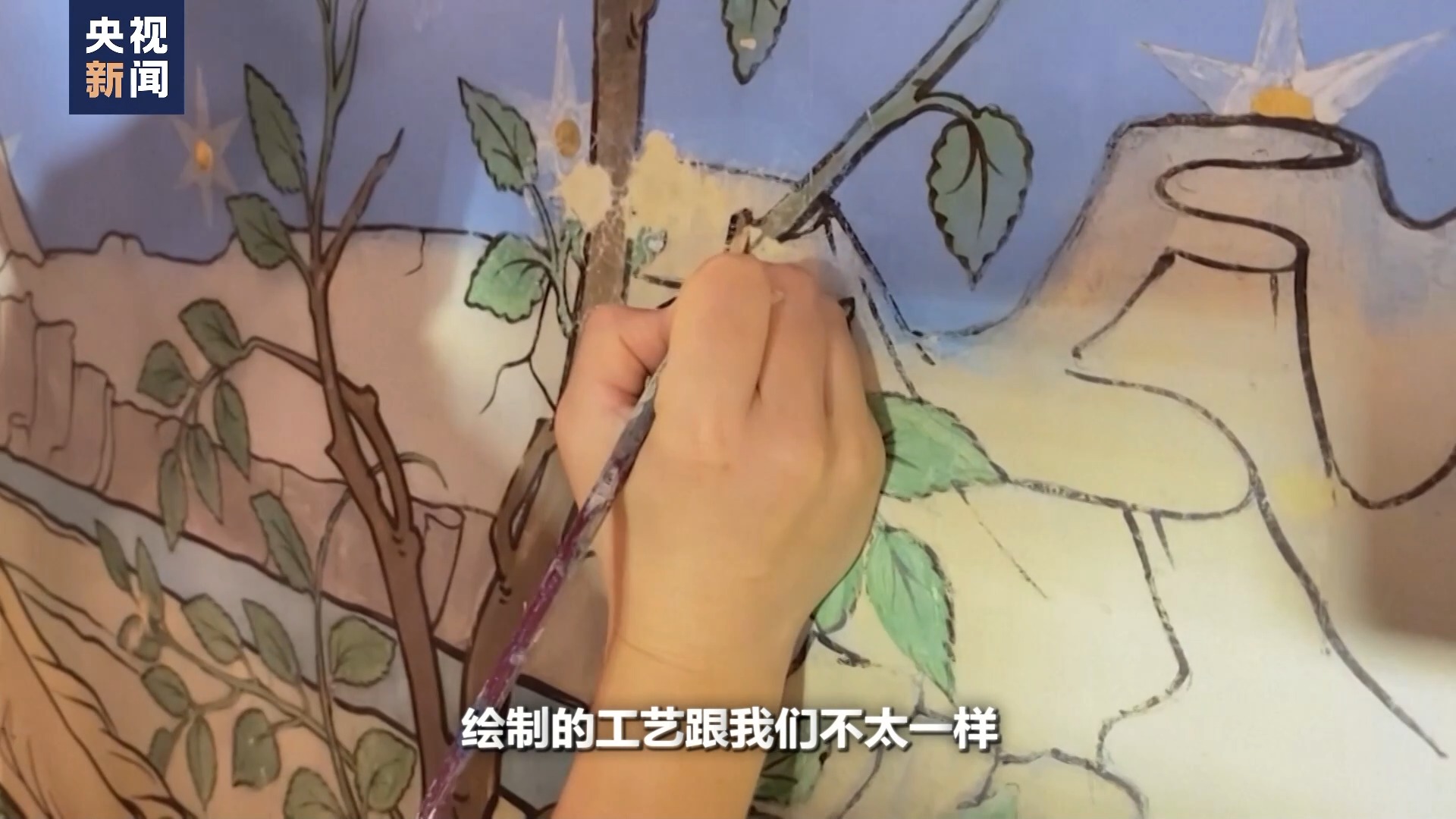 他的壁畫跟我們不太一樣,因為它是歐洲的壁畫教堂壁畫,他繪制的工藝跟我們不太一樣,我們把它一般叫濕壁畫。咱們國家相當(dāng)于是干壁畫,兩個壁畫的工藝就不太一樣,修復(fù)過程中也不一樣,我們可能更多交流這樣的過程。