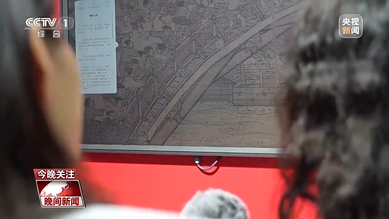 第七屆數(shù)字中國建設峰會參展商 翟芮:比如說這幅清明上河圖,采用了超高清的采集,可以把整個畫作無限放大,比如這個細節(jié)是在橋上有兩隊人馬,他們兩個起了沖突,互不相讓,周圍這些是看熱鬧的。