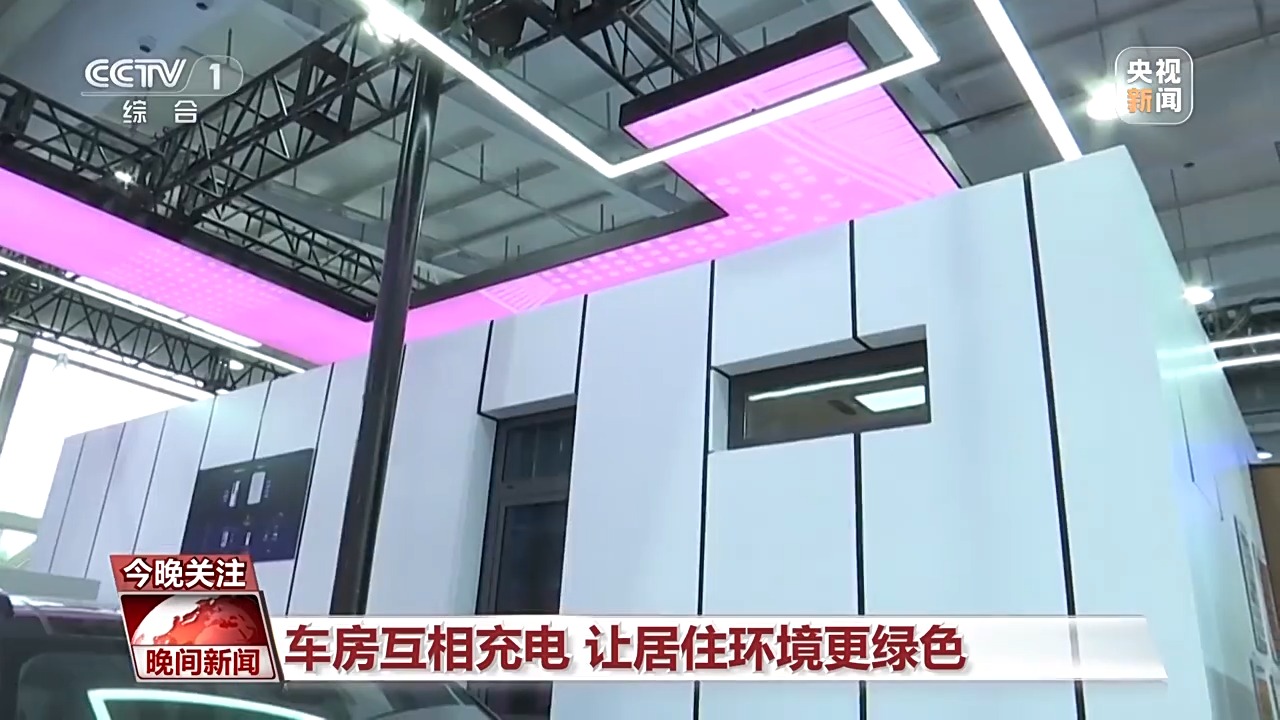 總臺央視記者 張春玲:在我們房子的頂部還有一個神秘的裝備就是新能源電池板,通過新能源電池板對太陽能的收集之后,它可以放在房屋這一側(cè)的儲能箱里,同時,它旁邊還有一個雙向的充電樁,這個充電樁可以給我們的新能源電池汽車進行充電,同時房子的能源匱乏的時候,我們的新能源汽車還可以反向的給這個房子放電,實現(xiàn)了能源循環(huán)利用。
