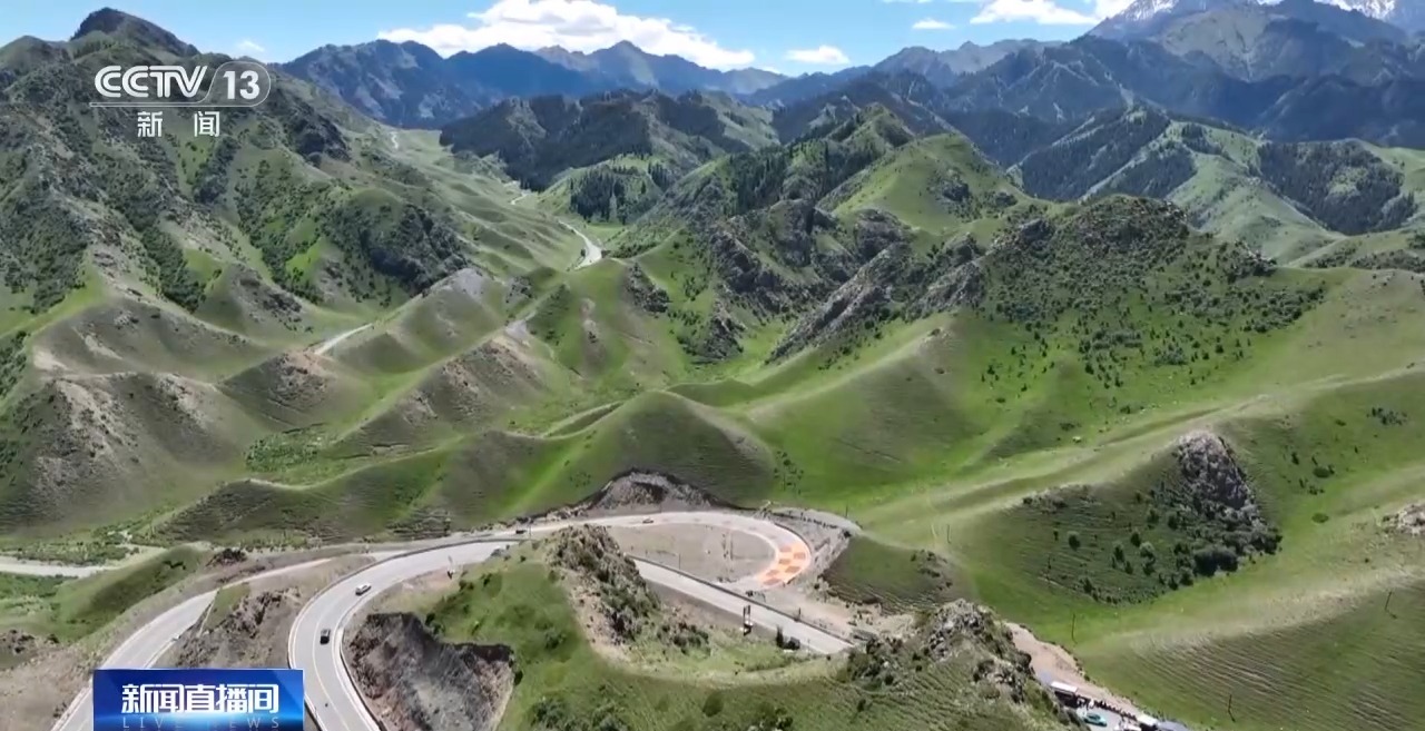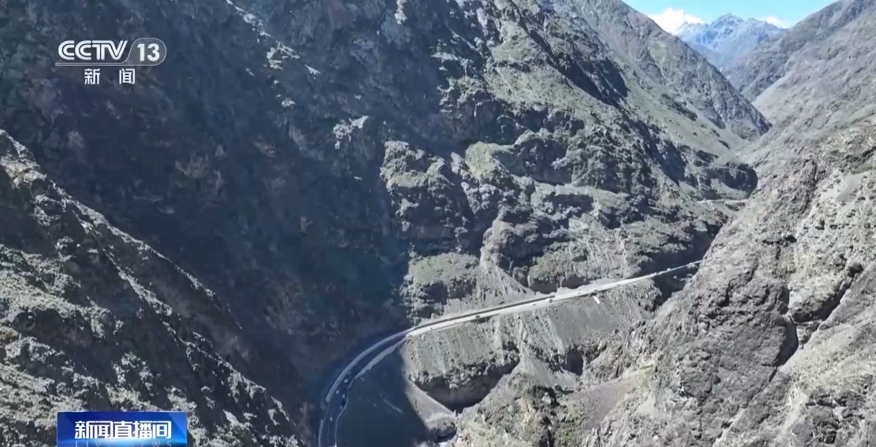 總臺(tái)記者 劉菲:這一路可以說(shuō)是崖壁陡峭、巖石突兀,這一側(cè)是垂直接近90度的山體,上下的高差達(dá)到200多米。在這條公路上行駛,可以感覺到翻過(guò)一座險(xiǎn)要山峰,另一側(cè)就邂逅了高山草甸的綠意。