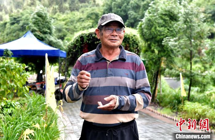 5月22日,年過六旬的臺農(nóng)陳慶徽接受中新社記者采訪時,講述了他在福建漳平種萱草的谷主夢。 中新社記者 張斌 攝