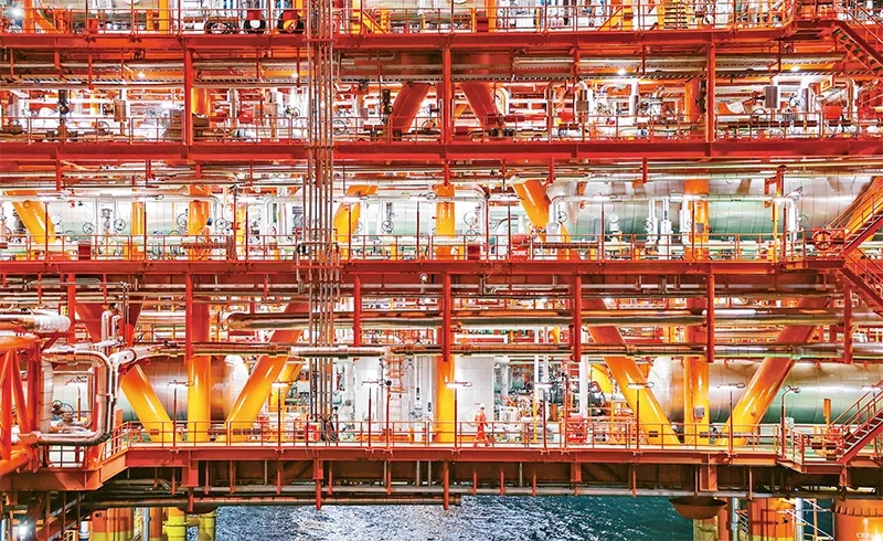 近年來,我國堅持創(chuàng)新引領(lǐng),加快發(fā)展新質(zhì)生產(chǎn)力,重大工程科技含量持續(xù)攀升。2023年11月14日,中國海油宣布我國渤海首個千億方大氣田——渤中19—6氣田Ⅰ期開發(fā)項目成功投產(chǎn),標志著我國海上深層復雜潛山油氣藏開發(fā)邁入新階段。圖為工作人員在渤中19—6氣田作業(yè)。 新華社發(fā) 杜鵬輝/攝