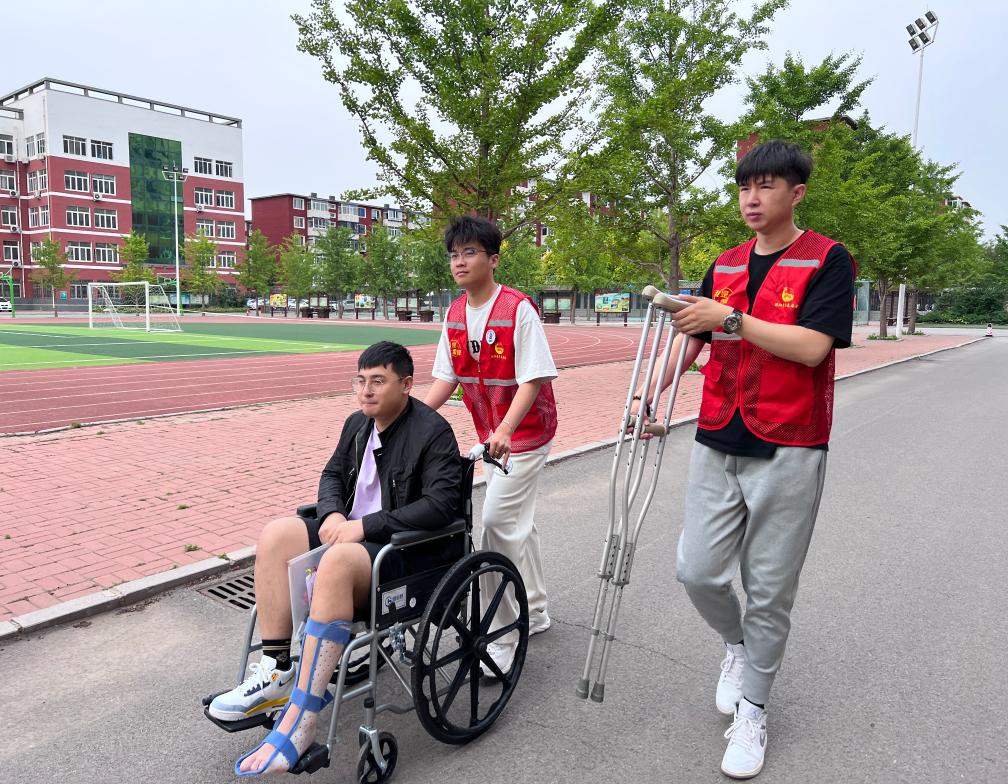 “我腳受傷了,行走不方便,你們能推我進(jìn)考場嗎?”“沒問題!我們會全程陪你進(jìn)出考場?!鄙蜿柺械谖迨袑W(xué)考點門口,當(dāng)看到一位考生坐著輪椅行動不便時,志愿者們迅速承擔(dān)起了接送任務(wù)。