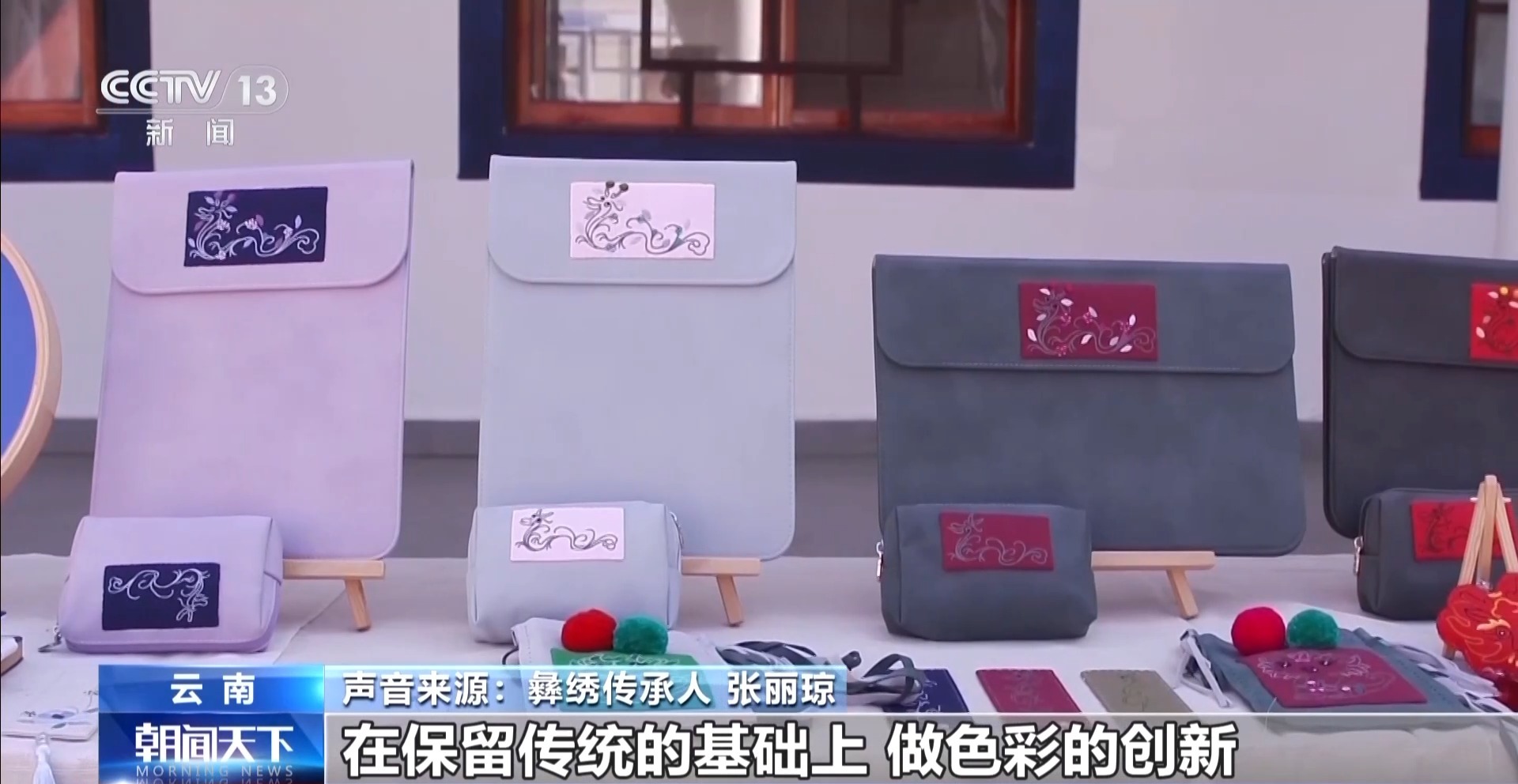 彝繡傳承人 張麗瓊:我們?cè)谧鲈O(shè)計(jì)的時(shí)候,在保留傳統(tǒng)的基礎(chǔ)上,做色彩的創(chuàng)新。