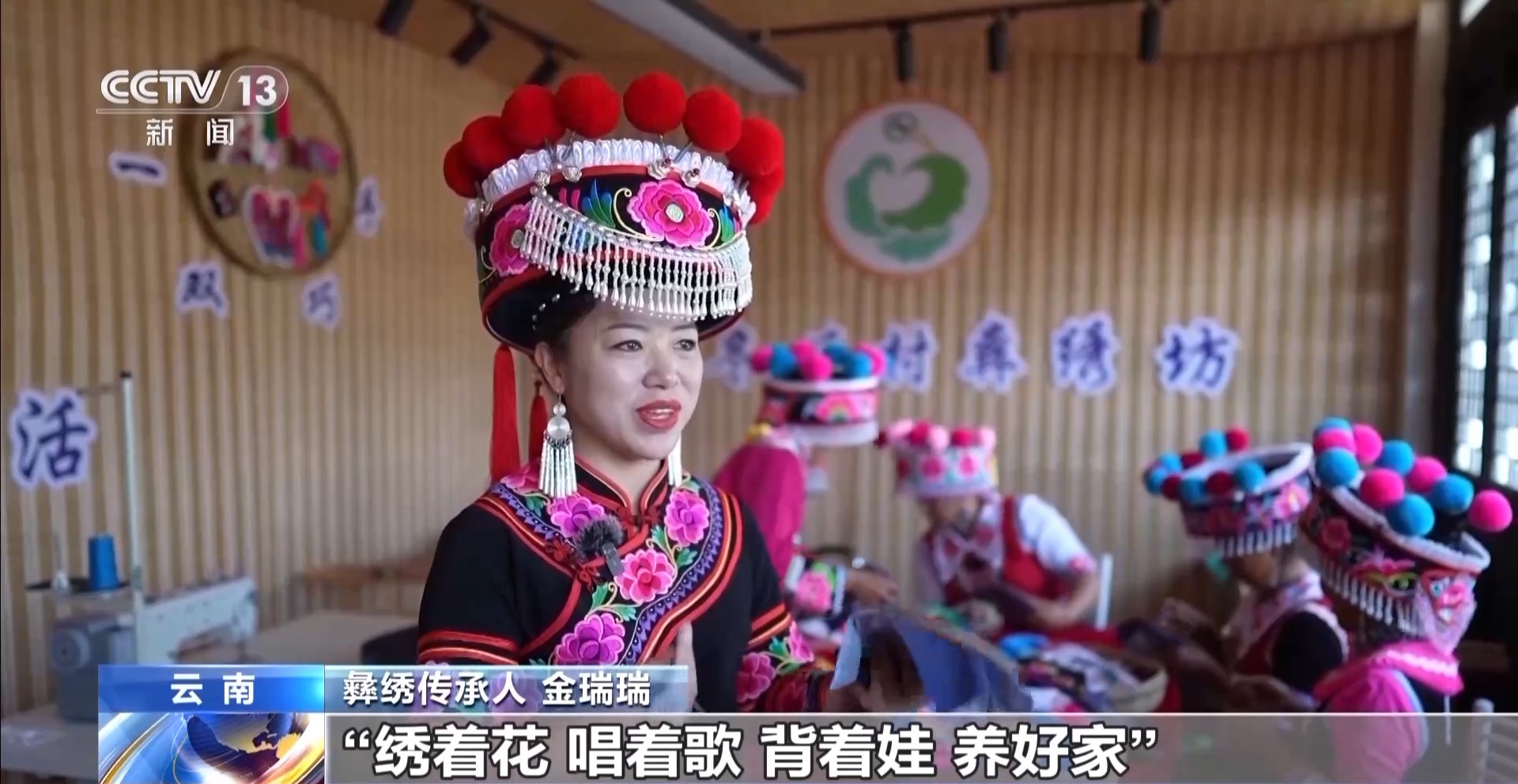 彝繡傳承人 金瑞瑞:它已經(jīng)讓更多的年輕媽媽在家里面“繡著花、唱著歌、背著娃、養(yǎng)好家”