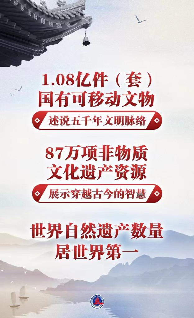 1.08億件(套)國(guó)有可移動(dòng)文物述說五千年文明脈絡(luò),87萬項(xiàng)非物質(zhì)文化遺產(chǎn)資源展示穿越古今的智慧,世界自然遺產(chǎn)數(shù)量居世界第一……文化和自然遺產(chǎn)濃縮著中華文明發(fā)展和自然演進(jìn)的珍貴成果。