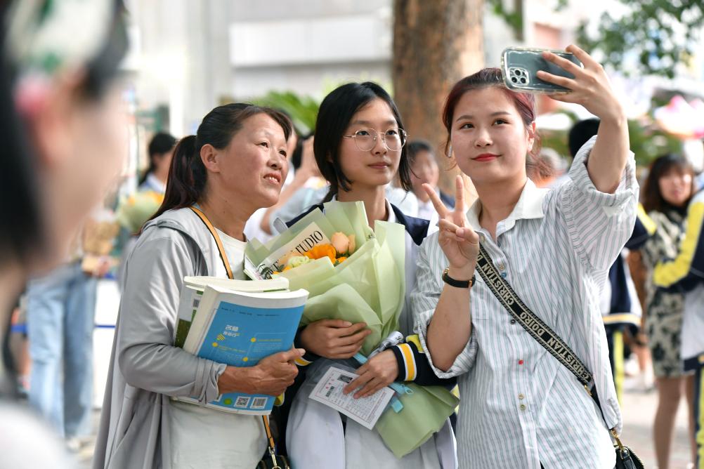 考生們從考場(chǎng)魚(yú)貫而出,家長(zhǎng)們送上鮮花和擁抱,大家合影留念,記錄下青春歲月里的難忘時(shí)刻……