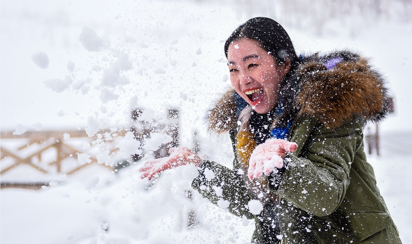 長(zhǎng)白山景區(qū)內(nèi)玩雪的游客。 記者 王昊飛 攝
