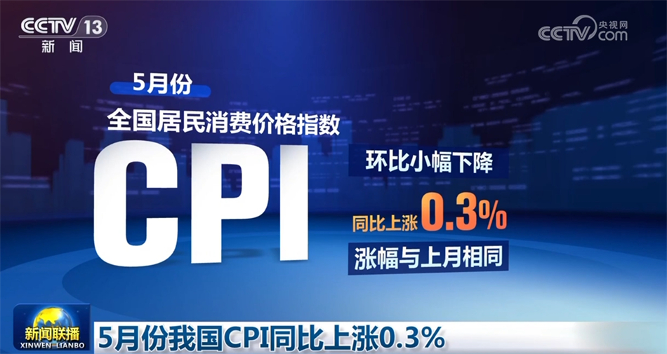 記者從國(guó)家統(tǒng)計(jì)局最新發(fā)布的數(shù)據(jù)中了解到,5月份,全國(guó)居民消費(fèi)價(jià)格指數(shù)(CPI)環(huán)比受季節(jié)性因素影響小幅下降,同比上漲0.3%,漲幅與上月相同。從構(gòu)成CPI的八大類商品和服務(wù)價(jià)格看,除食品和交通通信價(jià)格同比下降外,衣著、居住等其他六大類價(jià)格均同比上漲,居民消費(fèi)需求恢復(fù)的態(tài)勢(shì)持續(xù)鞏固,我國(guó)消費(fèi)市場(chǎng)運(yùn)行總體平穩(wěn)。