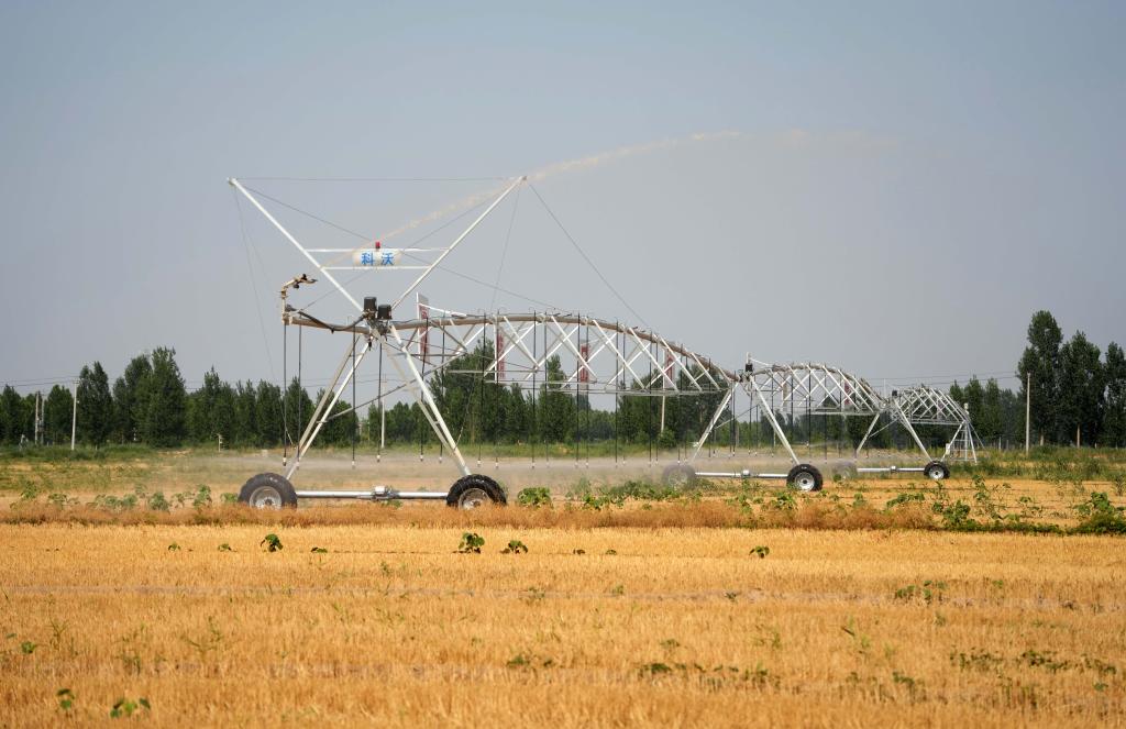 指針式噴灌機、地埋式噴灌設(shè)備、新式出水閥,在山東得益農(nóng)業(yè)科技股份有限公司的高標準農(nóng)田里,這些灌溉“標配”齊上陣,讓夏灌保墑比以往省心省力。
