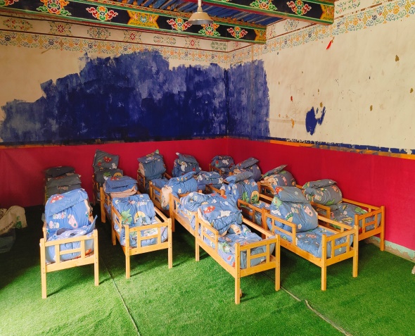 金點(diǎn)子,抓實(shí)干。自階段性入戶工作開展以來,駐西嘎村第十三批工作隊(duì)認(rèn)真了解入戶時(shí)發(fā)現(xiàn)的村幼兒園改造未能推進(jìn)的問題,現(xiàn)場走訪村幼兒園,排查村幼兒園用火、用電、用氣、食品衛(wèi)生安全隱患。在交談中,兩位教師談及幼兒園房間老舊、水泥地板凹凸不平,導(dǎo)致幼兒無法午休的問題,工作隊(duì)第一時(shí)間請示領(lǐng)導(dǎo),現(xiàn)場勘察房間形狀與大小,駐村隊(duì)員自發(fā)購買并鋪就64.2平米防滑草坪地毯,以改善園內(nèi)22名幼兒生活環(huán)境,給孩子們創(chuàng)建了相對舒適、干凈的午休環(huán)境。村幼兒園教師次珍表示:“此次活動極大改善了孩子們的生活條件,感謝人行日喀則市分行駐村工作隊(duì)一直以來對村幼兒園工作的關(guān)心?!?/p>