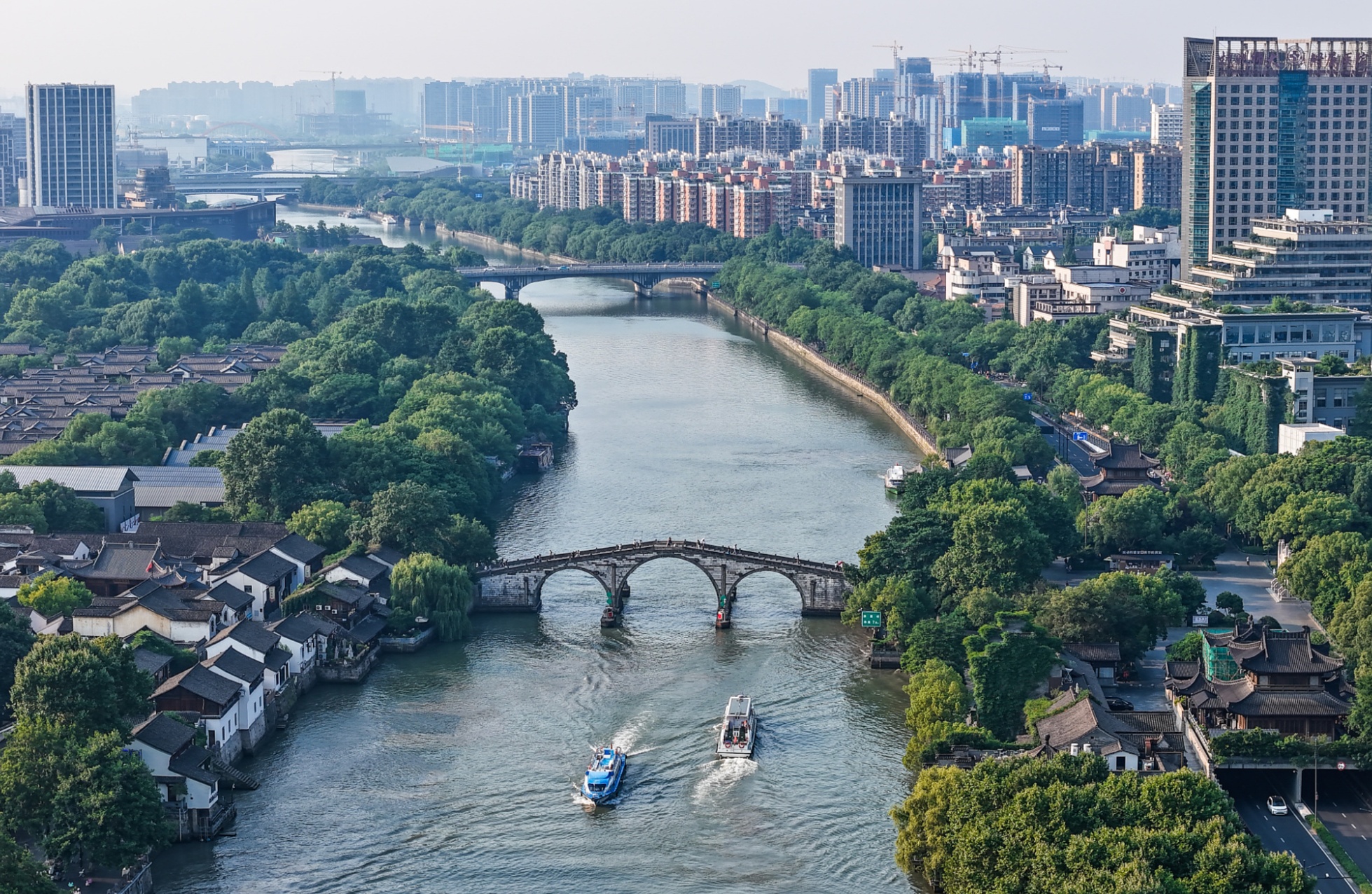 從空中俯瞰大運河(杭州段)拱宸橋兩岸