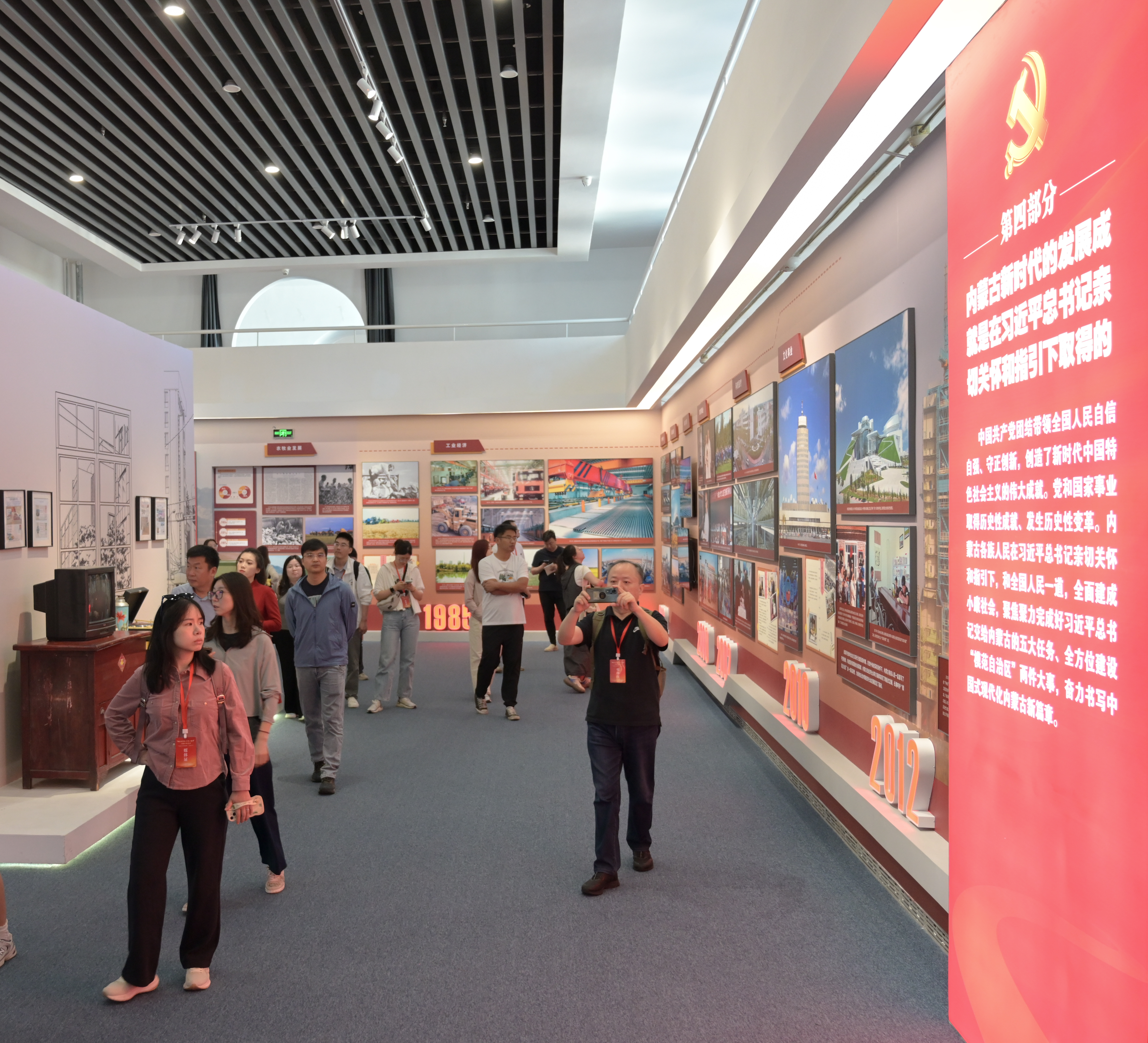 “牢記囑托 感恩奮進”主題展以鑄牢中華民族共同體意識為主線,分為“人民領袖 情系北疆”“高瞻遠矚 把舵領航”“五大任務 擔當奮進”“聚焦主線 模范前行”“人民至上 初心如磐”“勇闖新路 挺進中游”六大篇章,全面回顧了習近平總書記對內(nèi)蒙古的深情關懷和厚愛期許,生動展現(xiàn)了各族干部群眾緊跟總書記奮進新征程、建功新時代的生動實踐。