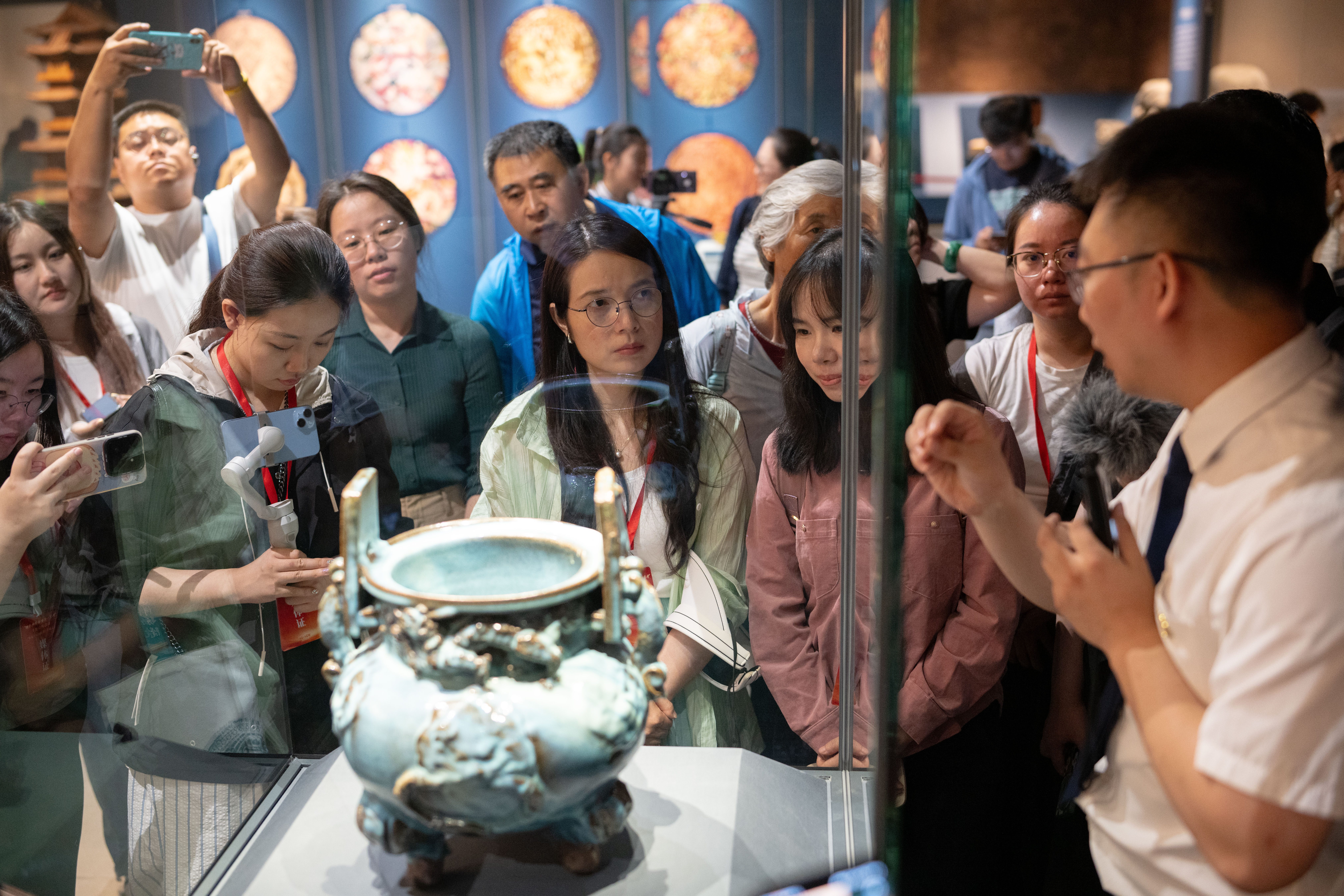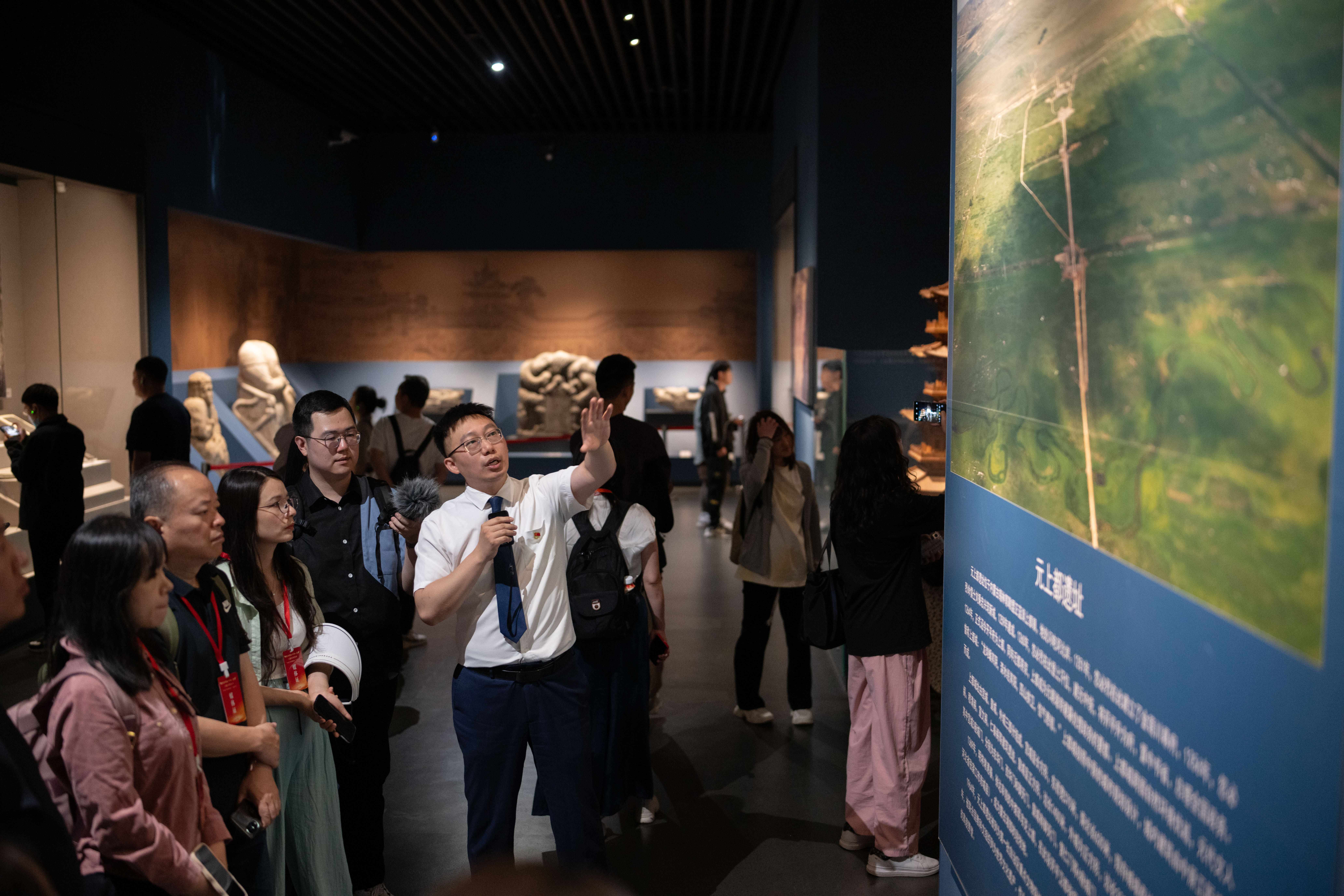 在內(nèi)蒙古博物院,采訪團成員聽講解。