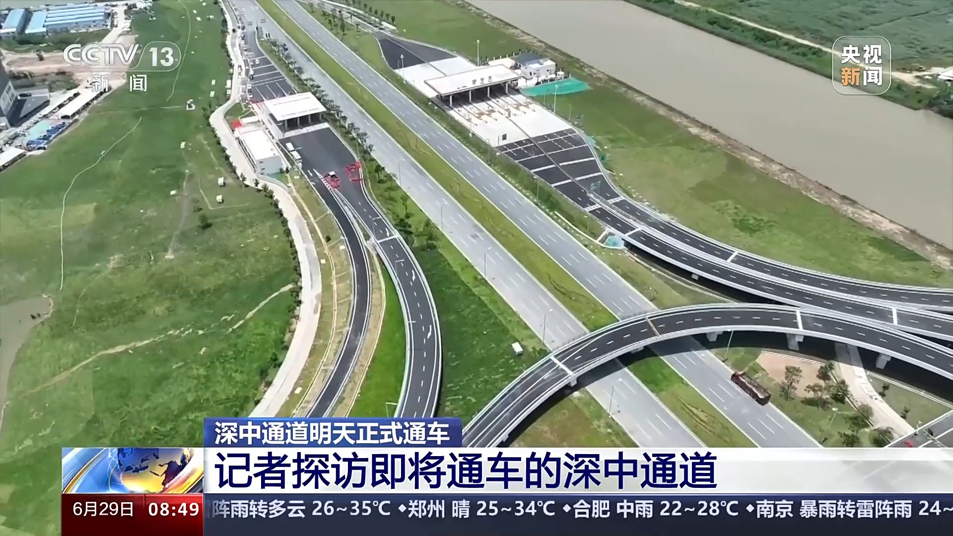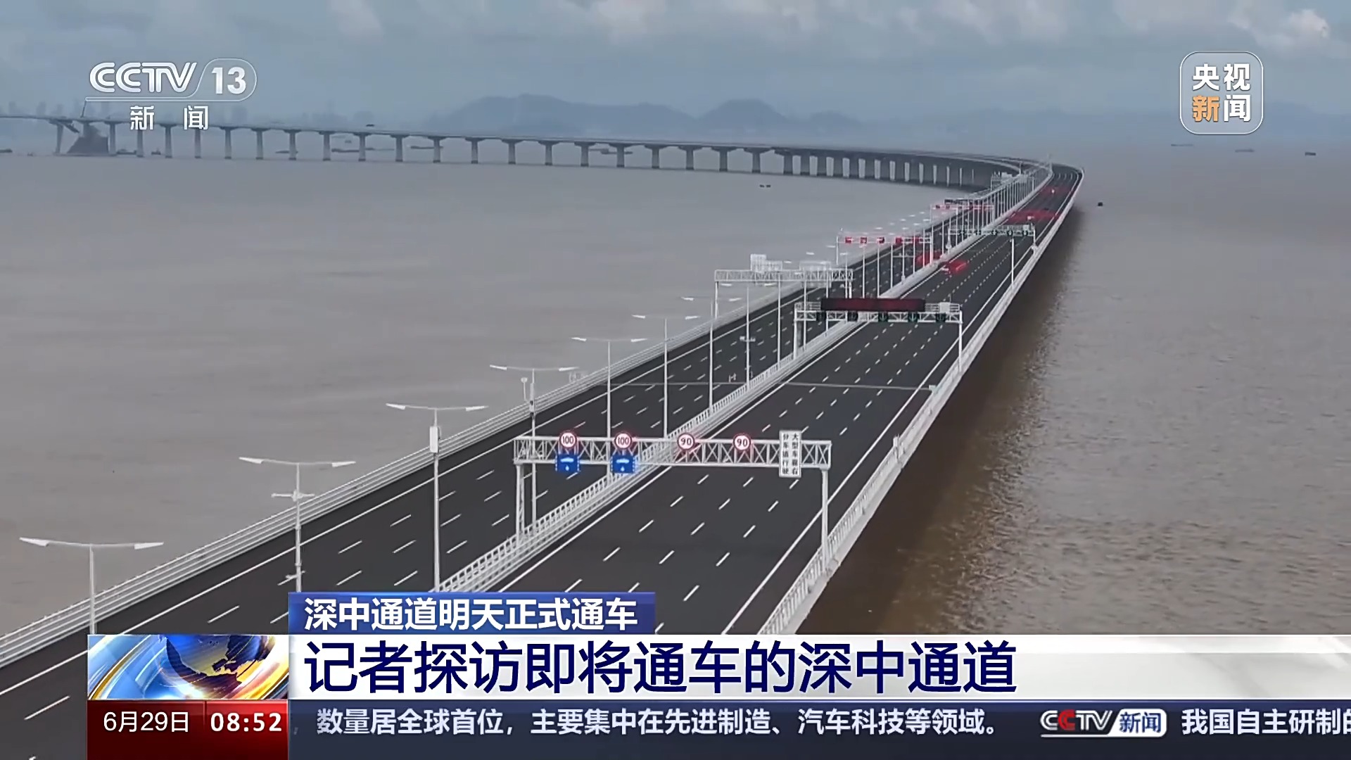 總臺記者 王思元:深中通道全長24公里,我們行駛了大概18分鐘,就已經(jīng)通過海底隧道進(jìn)入了深圳。這里是重要的互聯(lián)互通的交通樞紐,我身后就是廣深沿江高速,通過我的另一側(cè),大家可以看到,從這里行駛5公里左右,就可以到達(dá)機(jī)荷高速和廣深高速了,從這個位置到達(dá)深圳寶安國際機(jī)場有2公里的距離。