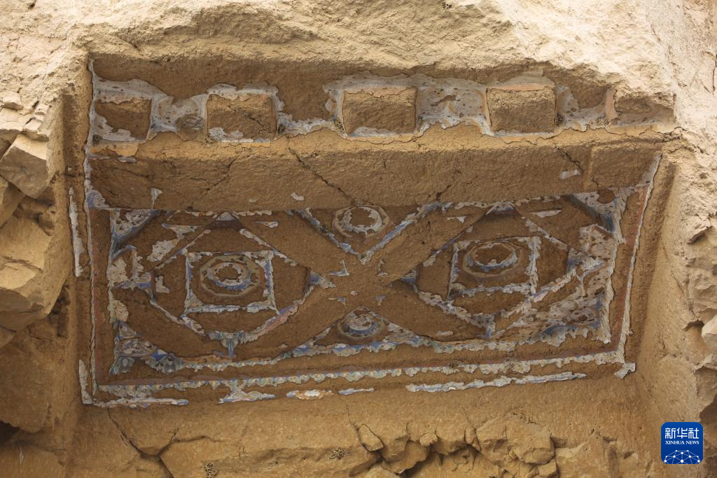 這是6月15日在阿富汗巴米揚(yáng)省弗拉迪石窟遺址區(qū)拍攝的一處石窟頂部結(jié)構(gòu)與殘存壁畫。新華社發(fā)(塞夫拉赫曼·薩菲攝)