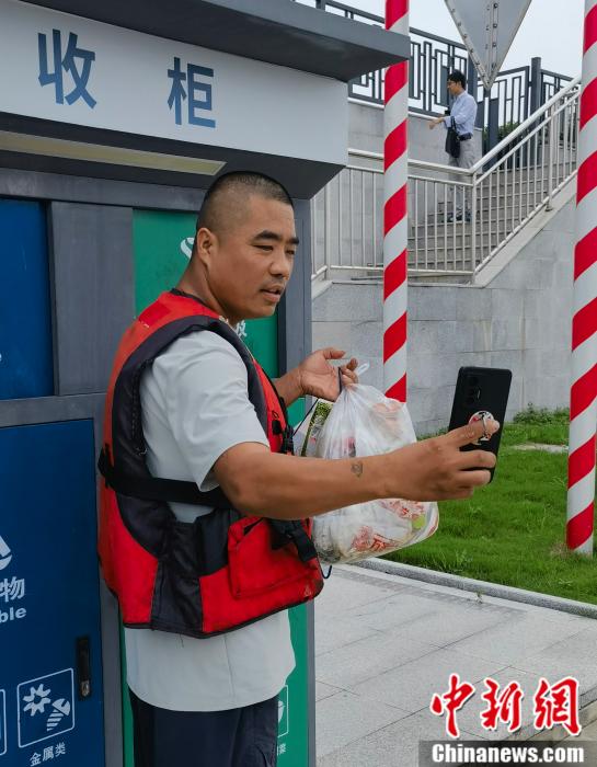 圖為張船長(zhǎng)上岸處理生活垃圾。郎朗 攝