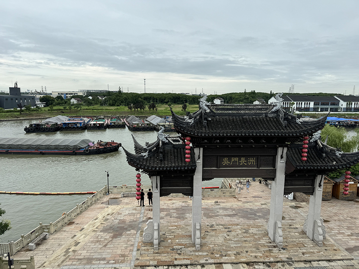 行走在運河公園,亭、臺、樓、閣錯落有致,碑、牌、匾、聯(lián)引人思緒。登望運閣極目遠(yuǎn)眺,河面上舟楫如織。作為大運河最繁忙的河段之一,每天,有數(shù)千條貨船從這里穿行,他們在“吳門長洲”的石坊前劃過的一瞬間,仿佛古今同框,一眼千年。