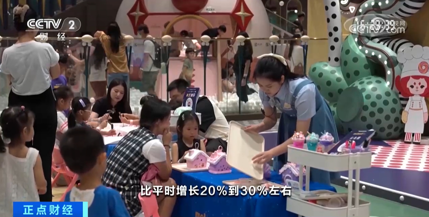 某室內(nèi)游樂場(chǎng)深圳一方天地店值班經(jīng)理麥麗勤介紹:“比平時(shí)增長(zhǎng)20%至30%左右,因?yàn)楹⒆觽兎偶倭?,家長(zhǎng)們也有空帶孩子們過(guò)來(lái)玩?!?/p>