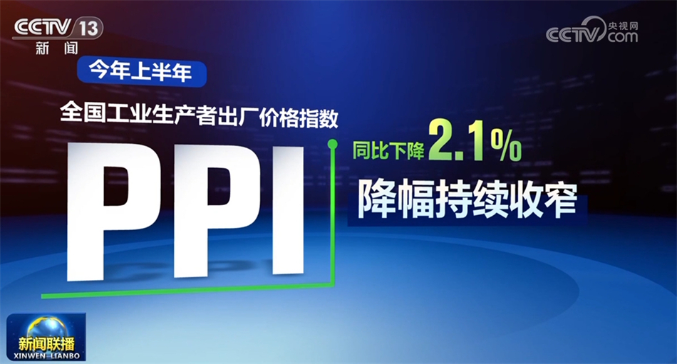上半年,全國(guó)工業(yè)生產(chǎn)者出廠(chǎng)價(jià)格指數(shù)PPI降幅持續(xù)收窄,同比下降2.1%。