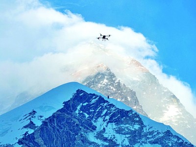 中國(guó)民用無人機(jī)完成全球首次珠峰6000米海拔物資運(yùn)輸。新華社發(fā)