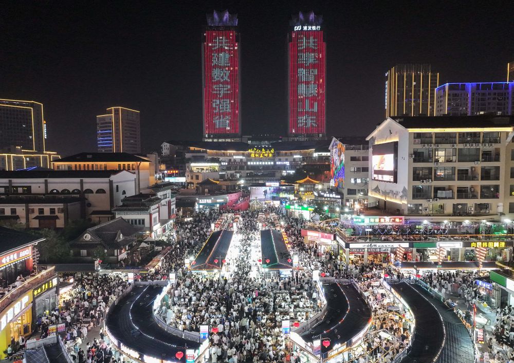 7月14日,游客在南京夫子廟景區(qū)游覽(無人機(jī)照片)。新華社發(fā)(楊素平攝)