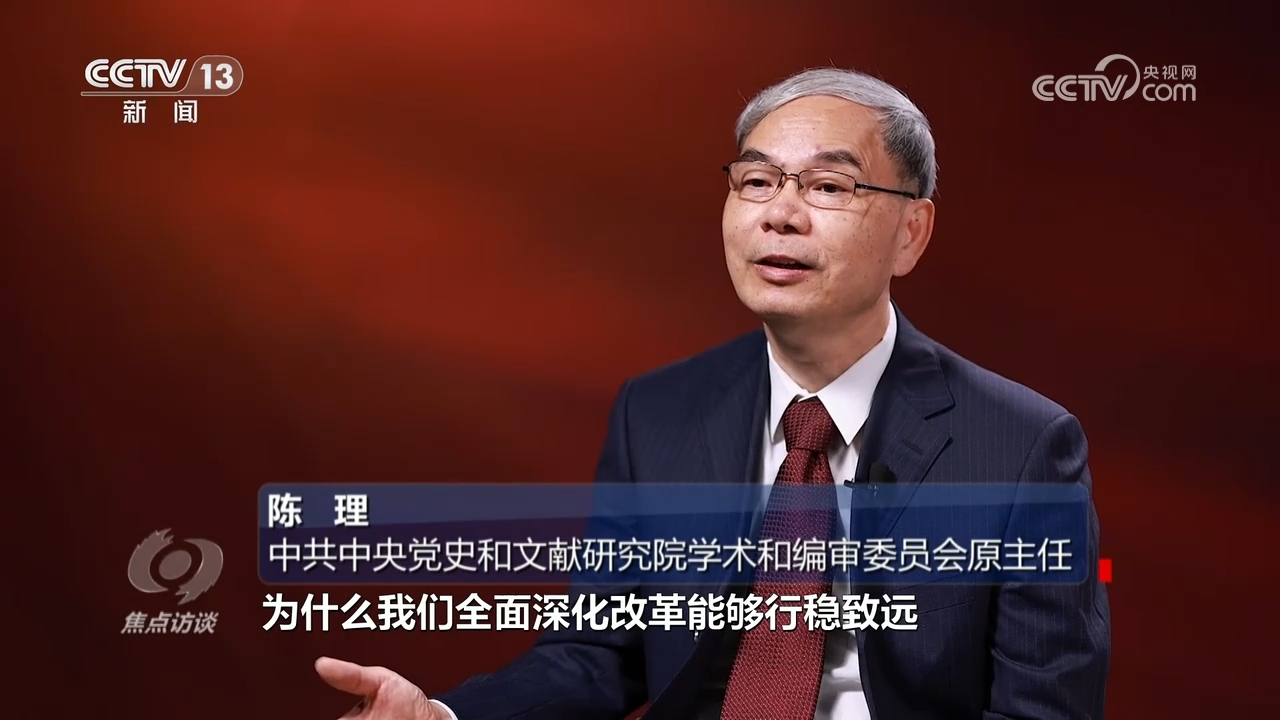 中共中央黨史和文獻(xiàn)研究院學(xué)術(shù)和編審委員會(huì)原主任陳理:“回過頭來看十多年的全面深化改革,就看得非常清楚。為什么全面深化改革能夠行穩(wěn)致遠(yuǎn),能夠始終沿著正確的方向進(jìn)行,能取得今天這樣的歷史性偉大成就?原因有很多條,其中首要的、最根本、最重要的第一條,是堅(jiān)持黨對全面深化改革的統(tǒng)一領(lǐng)導(dǎo)。”