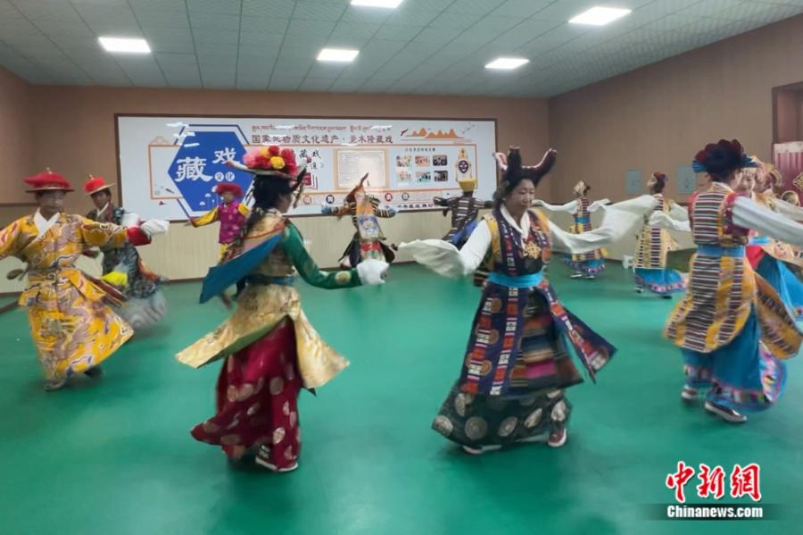 中新網拉薩7月27日電 (記者 陳文韜 澤塔雍措)伴著鏗鏘的鑼鼓,隔著老遠就能聽見婉轉的藏戲唱腔;走近觀瞧,演員們身著傳統戲服,用充滿生命力的表演震撼著在場觀眾……