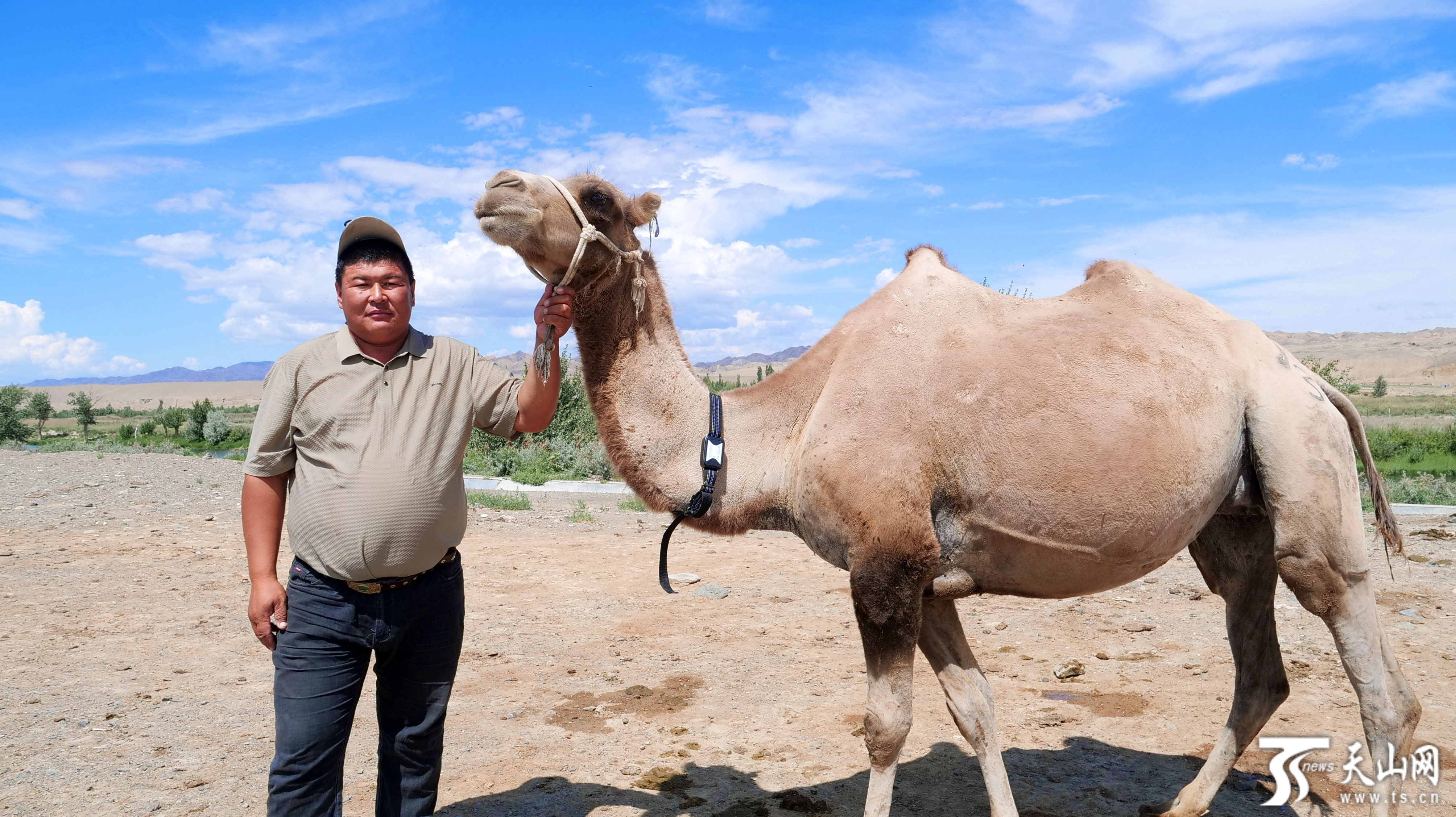牧民木拉提·畢木拉給駱駝戴上了“智慧項圈”。周偉杰 攝