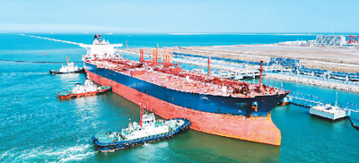 東營(yíng)海關(guān)數(shù)據(jù)顯示,今年上半年,山東省東營(yíng)市東營(yíng)港進(jìn)出境貨運(yùn)量807.3萬(wàn)噸、貨值344.7億元,同比分別增長(zhǎng)492.2%、556.5%。圖為7月30日,東營(yíng)港10萬(wàn)噸級(jí)碼頭,進(jìn)口貨輪經(jīng)海關(guān)監(jiān)管后,駛出碼頭。