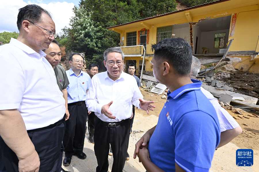 8月1日,中共中央政治局常委、國(guó)務(wù)院總理李強(qiáng)在湖南郴州看望慰問(wèn)受災(zāi)群眾,檢查指導(dǎo)防汛工作。這是李強(qiáng)在資興市州門司鎮(zhèn)燕窩村實(shí)地察看災(zāi)情,走訪受災(zāi)村民。新華社記者 岳月偉 攝