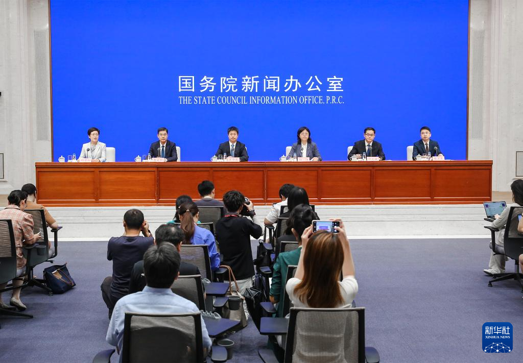8月1日,國務(wù)院新聞辦公室在北京舉行國務(wù)院政策例行吹風(fēng)會(huì),國家醫(yī)療保障局副局長黃華波,財(cái)政部社會(huì)保障司負(fù)責(zé)人郭陽,國家衛(wèi)生健康委醫(yī)政司負(fù)責(zé)人李大川,國家稅務(wù)總局社會(huì)保險(xiǎn)費(fèi)司司長鄭文敏,國家醫(yī)療保障局待遇保障司司長樊衛(wèi)東介紹《關(guān)于健全基本醫(yī)療保險(xiǎn)參保長效機(jī)制的指導(dǎo)意見》有關(guān)情況,并答記者問。 新華社發(fā)(趙一帆 攝)