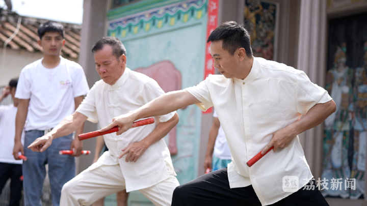 和村里許多家庭一樣,對英歌的喜愛在陳揚波家里代代相傳,他的爺爺陳才斗曾跟隨廣東省歌舞團,參加了1953年在北京的演出?!皠e人追星,我就追英歌。”陳揚波從小便癡迷于英歌激昂的節(jié)奏和矯健的身姿,夢想著有一天能成為英歌隊的一員。他迄今記得,兒時的大年初一,每當英歌鼓點響起,自己便會滿心歡喜地一路追隨在隊伍之后,縱情吶喊。到了寒暑假,他則會約上小伙伴,一起反復播放著VCD中的動作,時而慢放,時而暫停,接著把掃帚折成兩段,以柄為槌,歡然起舞。