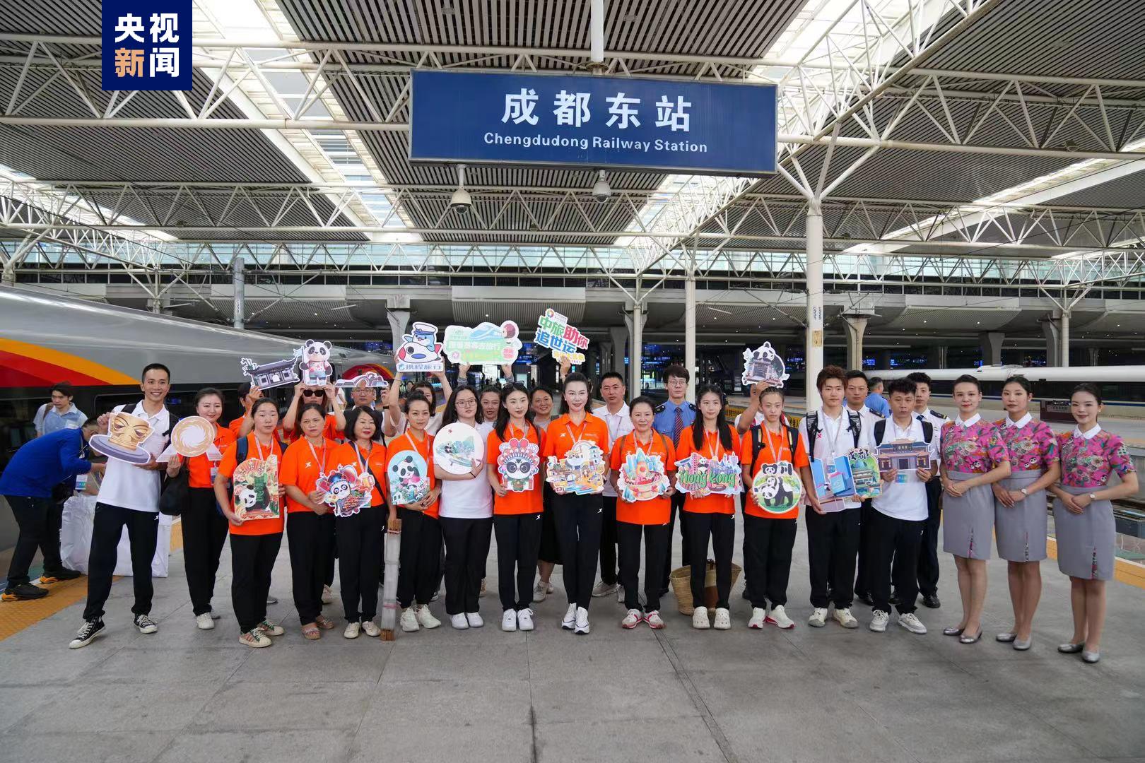 記者從成都世運(yùn)會(huì)執(zhí)委會(huì)和中國鐵路成都局集團(tuán)公司了解到,今天發(fā)車的“世運(yùn)蓉港行”主題列車(G2963成都東站——香港西九龍站),搭載了川籍奧運(yùn)冠軍、輪滑運(yùn)動(dòng)員、蓉港企業(yè)家、川劇藝術(shù)家、非遺傳承人、川菜企業(yè)、博物館金牌講解員等嘉賓赴港。