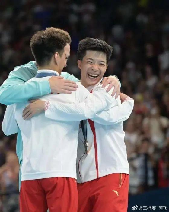 男子蹦床決賽,中國選手王梓賽和嚴(yán)浪宇分別獲得銀牌和銅牌。也許是因?yàn)檫z憾,第一次參加奧運(yùn)會(huì)的王梓賽留下了眼淚。來自白俄羅斯的金牌得主伊萬-利特維諾維奇穿越大半個(gè)場館,來到王梓賽身邊,給了他一個(gè)大大的擁抱。