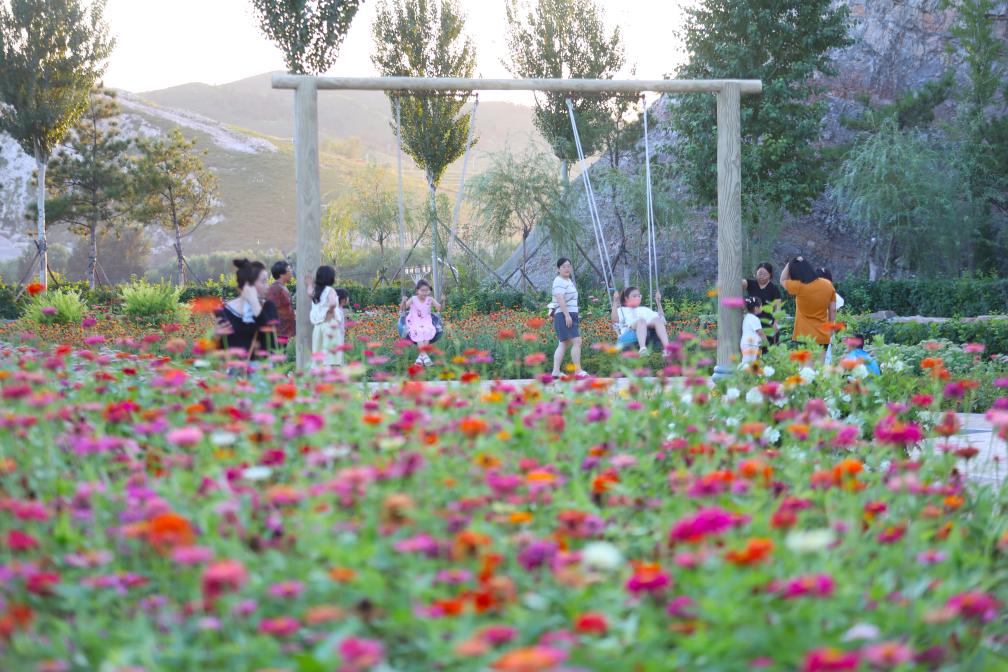 市民在由采石場修復治理和綠化建設而成的遼寧北票市山體公園休閑游玩(2024年8月8日攝)。新華社記者 楊青 攝