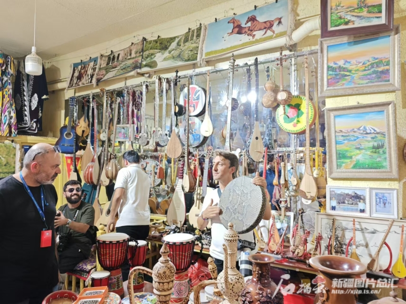 此外,喀什古城的銅器、木器、手工樂器、葫蘆烙畫等各類傳統(tǒng)非遺技藝,也成為土耳其媒體人關(guān)注的焦點(diǎn)。在木器巴扎內(nèi),手藝人拿起馬克筆、電烙筆、刻刀等工具,在葫蘆上勾好型,隨著工具在表面游走,一幅精美獨(dú)特的圖案便躍然于葫蘆之上。這一幕吸引了一日報(bào)總編輯易卜拉欣·瓦爾勒,“這是我第一次看到葫蘆烙畫,太神奇了,僅用幾件工具,就能將葫蘆變成一件精美的藝術(shù)品。”