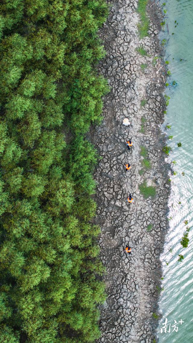 說話間,大家伙各就各位、有序分工,拍照的拍照、記錄的記錄。“樹寶寶”配合地排排立正,在風(fēng)中“搖頭晃腦”。此時(shí),“技術(shù)控”李明霖飛起一架無人機(jī),從高空拍下“大合影”和視頻,解釋道:“后續(xù)還要比對片區(qū)紅樹林總體長勢變化?!?/strong>