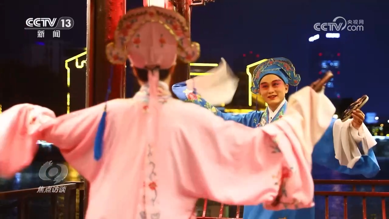 運河邊的演出不僅給市民以美的享受,也讓淮海戲這樣的傳統(tǒng)文化穿越時空,成為年輕人所喜聞樂見的一種新時尚,喚起對傳統(tǒng)文化的認同。18歲的孫玥從小是河畔戲臺的忠實觀眾,如今她也開始系統(tǒng)地學習淮海戲,在她看來,在河畔的露天戲臺看戲更能體會戲曲中的韻味。