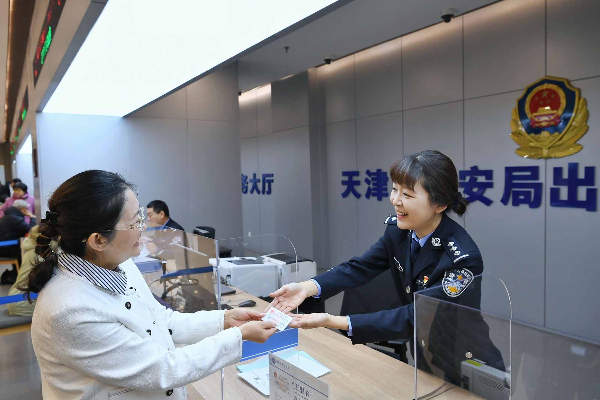 2023年12月1日,在華永居人員在天津市公安局出入境管理局領(lǐng)取“五星卡”